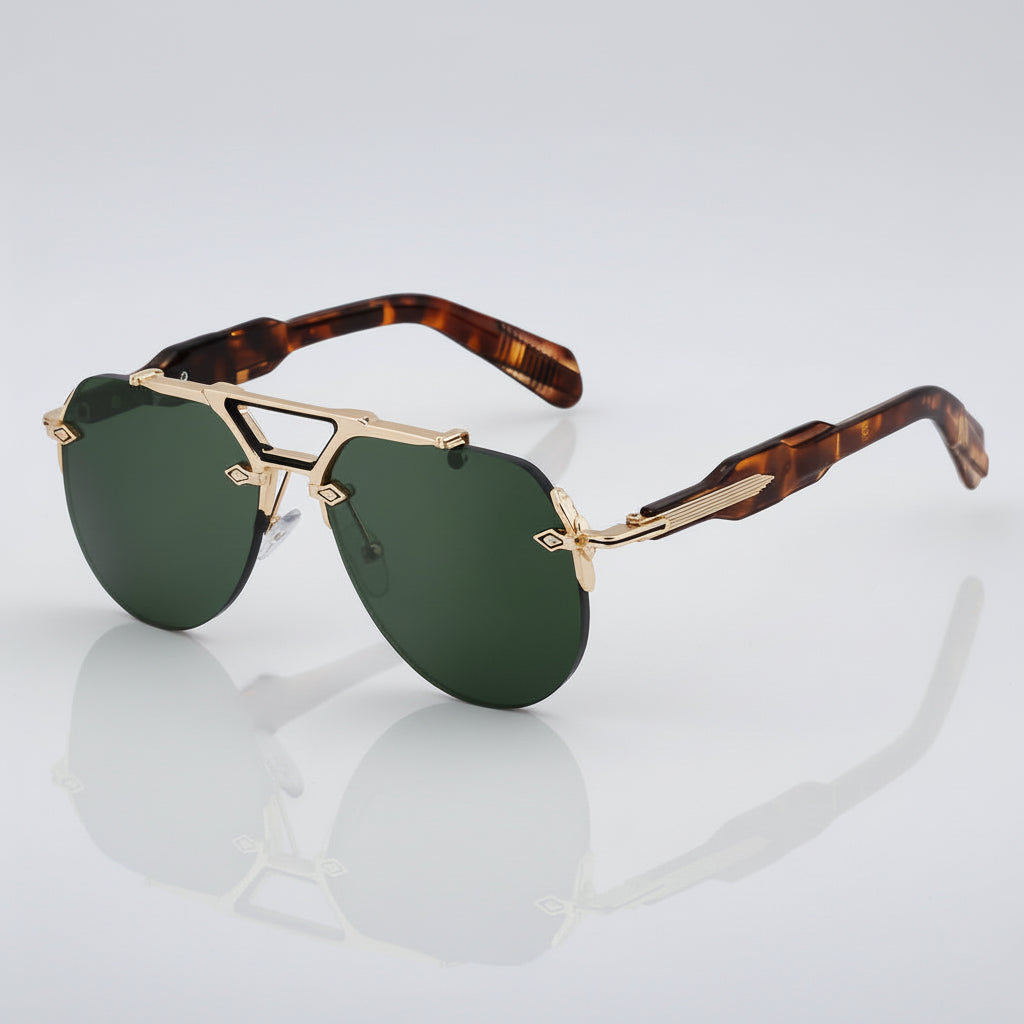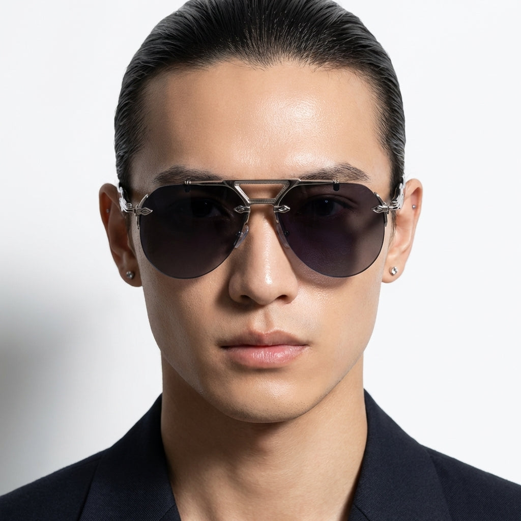 A bold metal double-beam frame with a rimless oversized silhouette defines its sharp, high-end presence from the first wear. Finished with UV400 protection and Category 3 sun lenses, it’s built for driving, city commutes, travel days, and statement moments under full daylight.