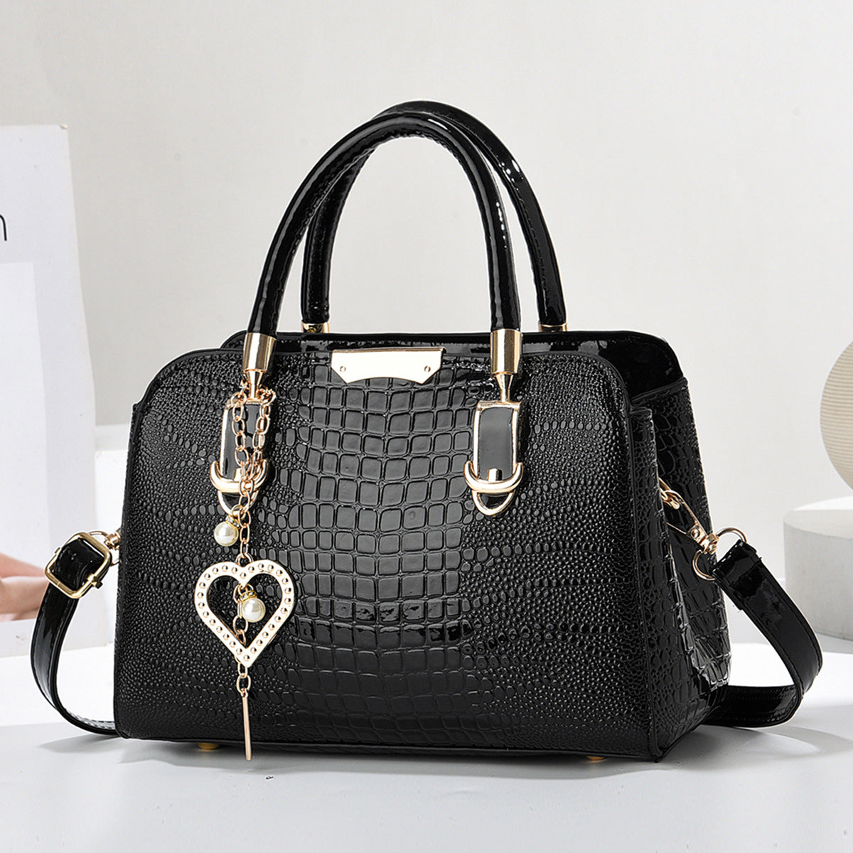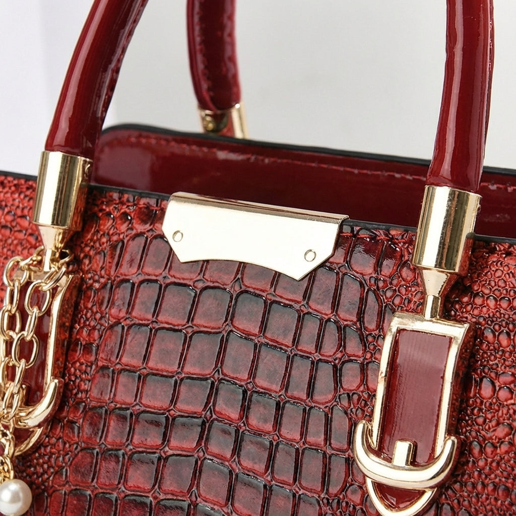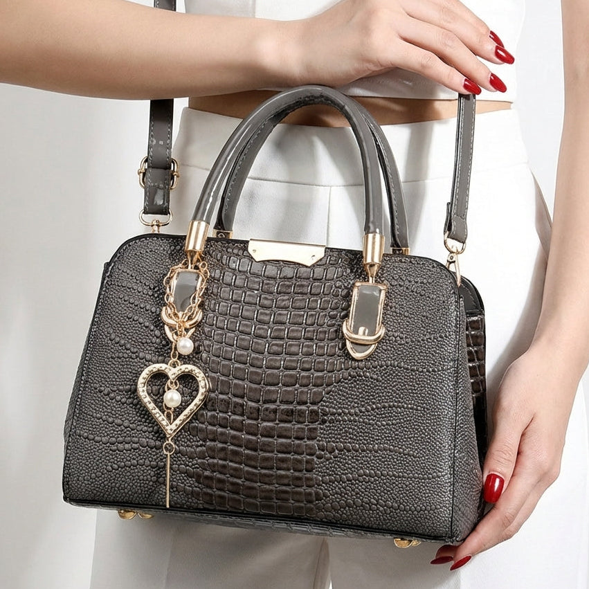 Crocodile-embossed texture and a sculpted silhouette deliver runway-inspired elegance with modern versatility. Designed to switch from shoulder to crossbody, it blends refined style and practical functionality for everyday sophistication.