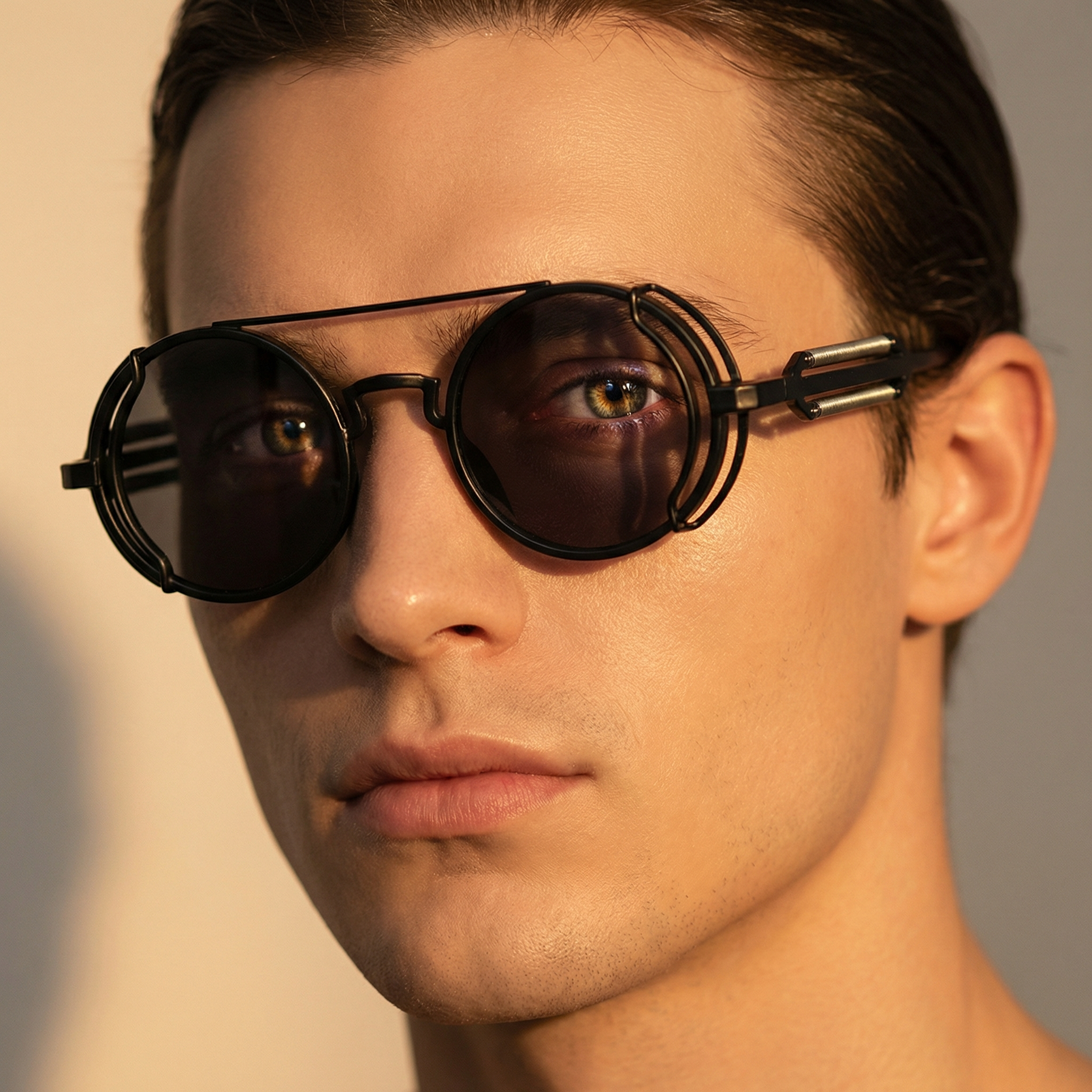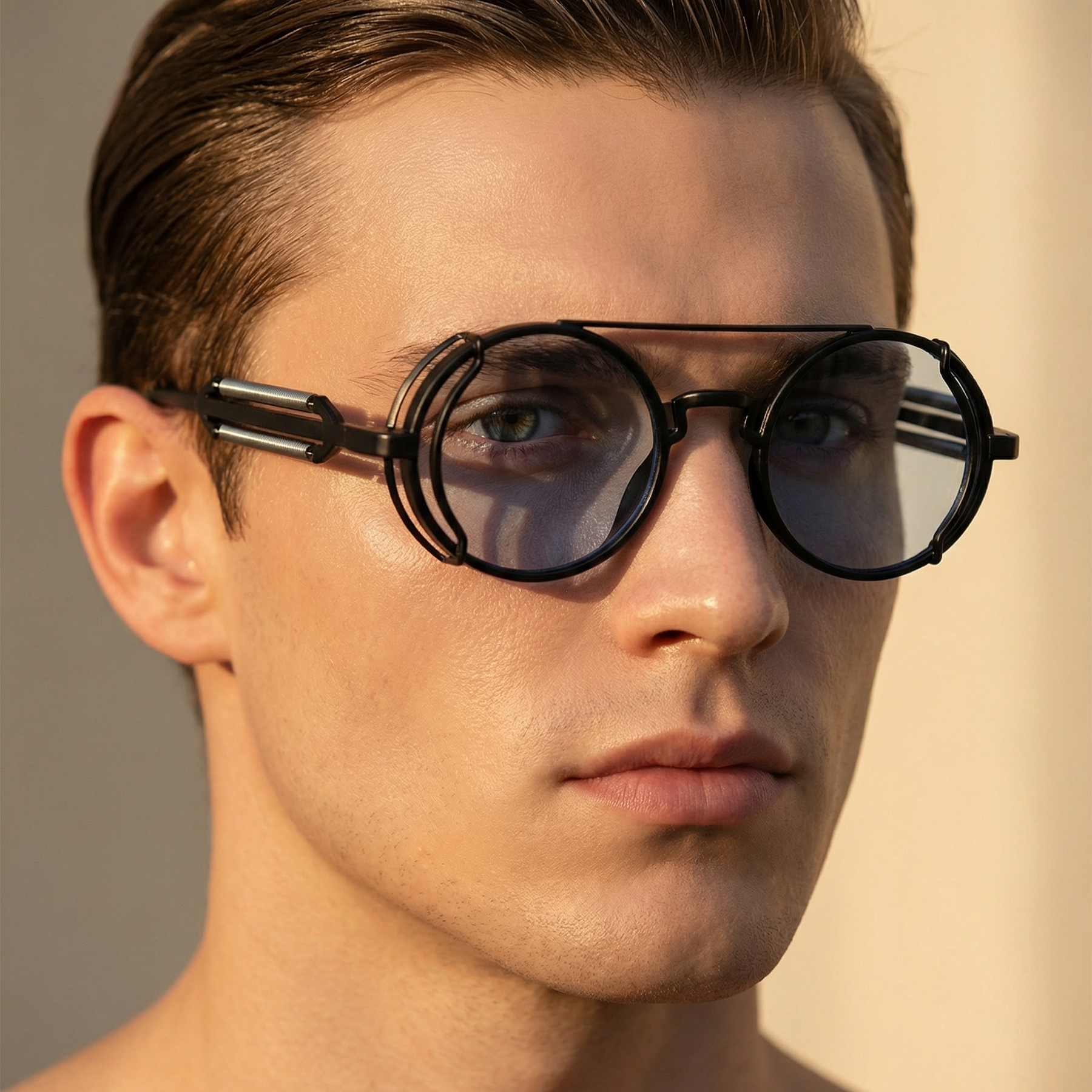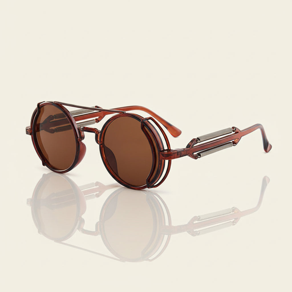 UV400 protection with bold round frames and a gothic steampunk edge sets the statement from the first glance. Built with a lightweight PC frame and clear AC lenses, they move from city streets and travel days to stage lights and late-night parties without losing attitude or comfort.