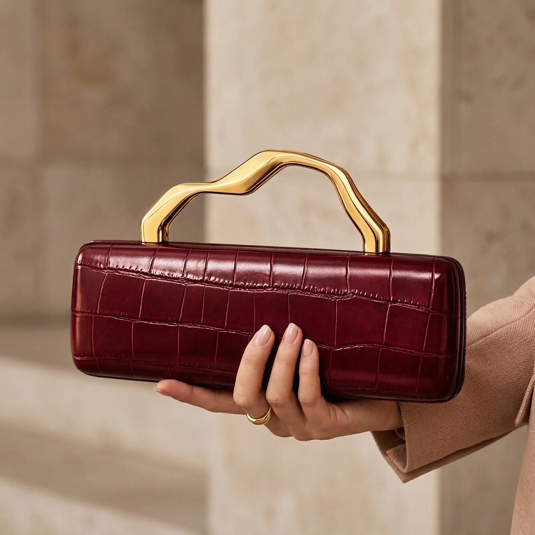 A sculptural statement bag with a bold triangular silhouette. The Apex Handbag’s unique 3D geometric design in premium matte leather makes it feel like wearable art. Finished with a slim shoulder strap and gold-tone buckles for easy carrying.